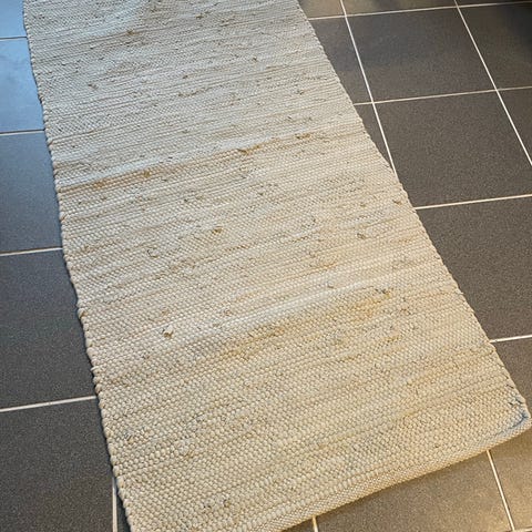 2 stk. ens kludetæpper, udført i 100 % bomuld i farverne grøn og hvid, produceret for Mørkegaard A/S. Længde 118 cm, bredde 61 cm. Tæpperne er nyvasket og fremstår i pæn stand.