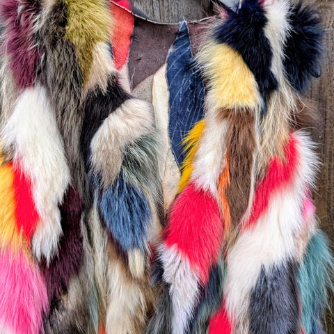 Meget smuk pelsvest med trykknapper og bindebånd i læder. Farven er utrolig smuk “is grå”. Der står str. M i vesten, men den er lille i størrelsen, så derfor vurderer jeg, at den svarer til en str. S.