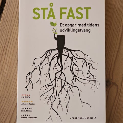 Arbejdslivet er præget af udviklingstendenser, forandringer og omstruktureringer og der udkommer mange bøger om personlig udvikling. Sociologer beskriver samfundet med metaforer som en flydende modernitet. hvor alt er under forandring. SB's primære gennemgående budskab er: Stå fast på dine fødder og find fodfæste. Han mener, vi skal tilbage til stoicismen fra det gamle Grækenland for at finde svar på nogen af de udfordringer vi står i, i dag. Målet med bogen er, at læseren undslipper den afhængighedstilstand som mange er fedtet i, af udvikling, omstilling, terapi og livsstilsvejledning. Brok, kritik, melankoli og sortsyn kan hjælpe os. Han har lavet en 7-trinsguide, som handler om at stoppe med at mærke efter i sig selv, vær negativ, tag nej-hatten på, undertryk dine følelser, fyr din coach, læs en "rigtig" roman og dvæl ved fortiden. SB argumenterer godt for sine meninger!