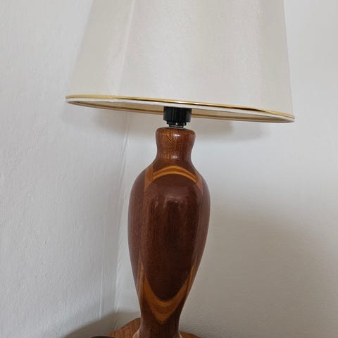Sælger denne flotte bordlampe med træfod (ukendt træsort).