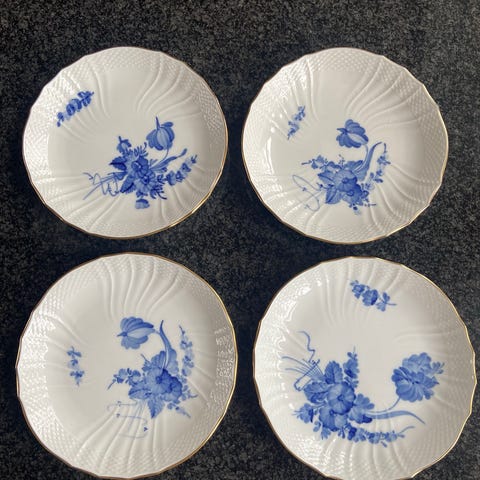 Porcelæn, 6 dybe tallerkener i Blå Blomst fra Royal Copenhagen med en diameter på 20,5 cm.