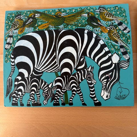Til børneværelset: Sjovt afrikansk elefantbillede malet på masonitplade