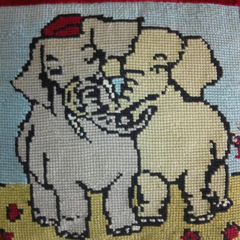 Vintage børnepude med broderet post-and