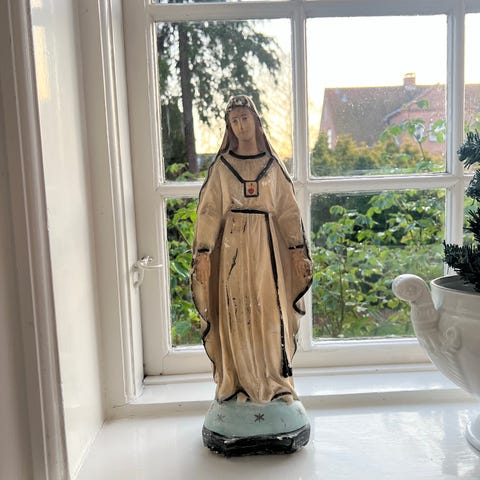 48 cm høj gl fransk tjener, som har stået på en fransk cafe. Han er repareret på højre albue, skjules af 2 silkeservietter.