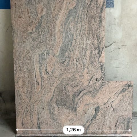 Stor, hel og smuk granitbordplade med skårede kanter (kaldet faset, se sidste billede)
