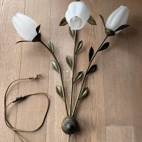 Lampens højde er 36 centimeter og diameteren af vægbeslaget er 12 centimeter.