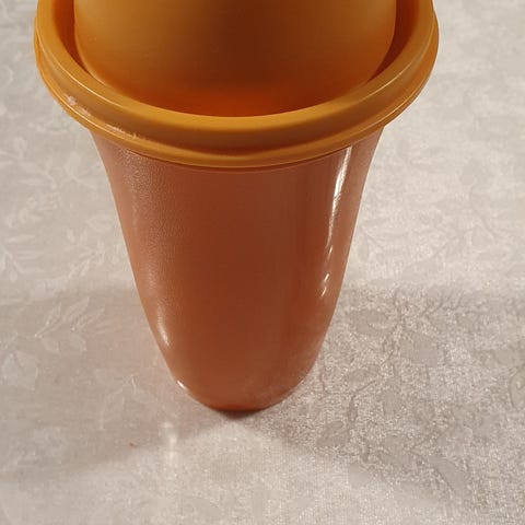 Gul plastik beholder med låg til at ryste jævninger glatte med