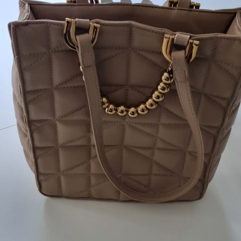 Skøn dametaske i sort polyester sælges da jeg ikke får den brugt. Mange rum til opbevaring(2 med lynlås på ydersiden og udover selve rummet indeni er der 1 sidelomme med lynlås, 1 sidelomme uden, plus 2 mindre i hver ende). Håndtag og indstillelig skulderrem.