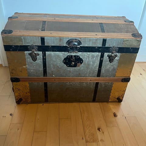 Smuk antik kiste med smedejernsbeslag og håndtag