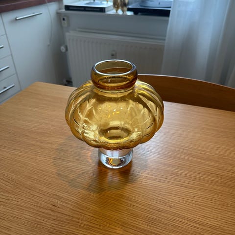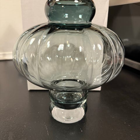 Balloon vase #01 er fremstillet af mundblæst glas, hvilket giver vasen et skulpturelt og unikt udtryk, som understreges af det runde formsprog og legende kurver. Vasen er en skulptur i sig selv og fungerer perfekt uden eller med få blomster.