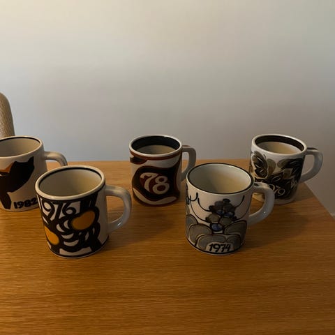 Porcelæn, Store årskrus., Royal Copenhagen, 5 forskellige årskrus fra Royal Copenhagen. Det er årgang 73, 79, 81, 83, og 91.
