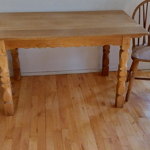 Gammelt spisebordssæt. Der er sæde med til en 4. Stol som desværre er gået i stykker.