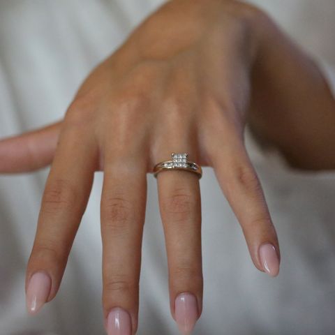Flot sød cross over diamant ring i 18 karat solid guld.