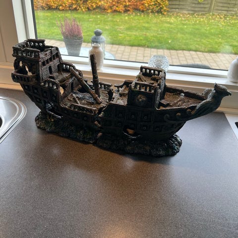 Akvariedekoration: Sørøverskib. Se billede for mål. Se også mine andre annoncer.