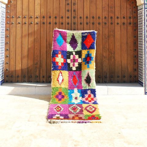 ✔ Unikt design – Ingen to Boucherouite tæpper er ens, og deres dristige, levende mønstre tilfører karakter til ethvert rum.