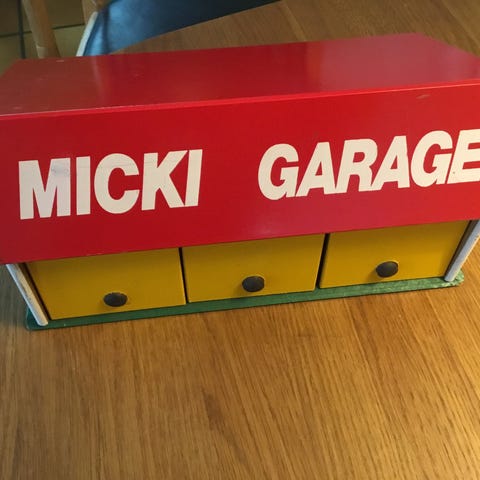 Legetøj, Lille charmerende vintage træ garage.