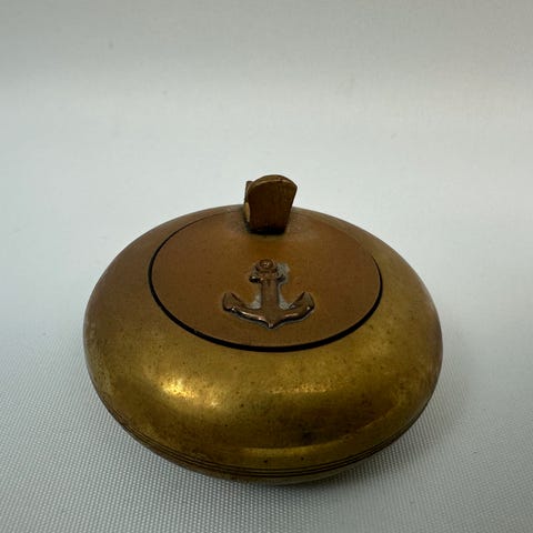 Andre samleobjekter, Ældre / vintage pilleæske i messing, Der er her tale om en lille ældre / vintage pilleæske i bemalet messing med aftageligt låg.