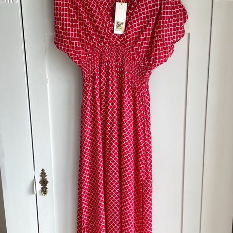 Sommerkjole, Uden mærke , str. M, Rød med hvide blomster, Næsten som ny