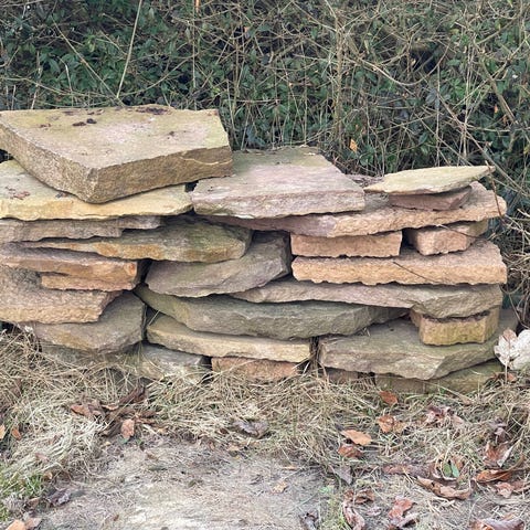 Trædesten , Ølandsten, Top stand smuk Trædesten Ølandsten i kølig rosa farve. Kan renses med Algerens eller brun sæbe. Jeg har flere til salg i ca samme størrelse og tykkelse. L 55cm B: 32cm Dybde: 10cm pris variere lidt alt efter størrelse