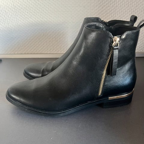 Støvler, str. 38, Pæne sorte korte læderstøvler, lynlås bagpå og bred hæl.