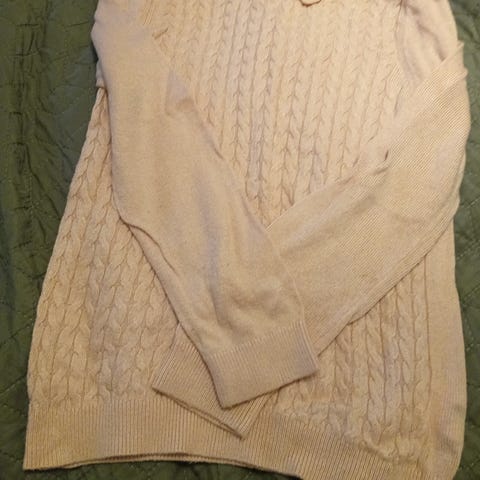 H&M striktrøje til pige i str. 134. Trøjen er ribstrikket og multifarvet med brede vandrette striber i lyserød, hvid og grå nuancer. Lange ærmer og rund hals. Egnet som hverdagstrøje eller til lag-på-lag på køligere dage.