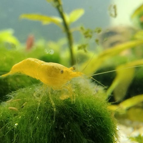 Orange ferskvandsrejer af varianten Orange Sunkist med gratis mos og planter med i købet.