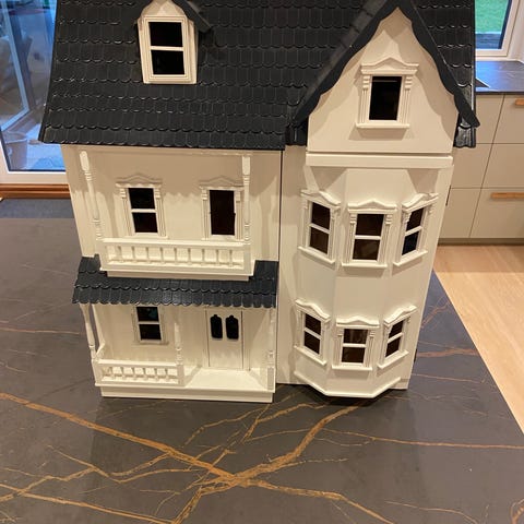 Rigtig flot gammelt dukkehus. Har både fine farver og retro tapet. Der hører alle de møbler og mennesker til som der ses på billedet.