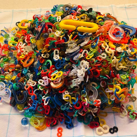 Andre samleobjekter, Hønseringe, Ca. 3 kg. Hønseringe i alle størrelser og farver.