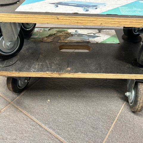 4 stk brugte kørestangsvogne med 1 stk løftestang, den ene vogn trækker på venstre hjul. L:125cm. B:71cm. Vogne og stang er ikke nye og sælges derfor som brugte, derfor kan der forekomme ridser, slid og skrammer. Prisen samlet og KUN samlet er 2.100kr.