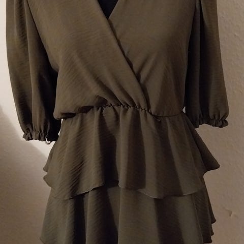 Lækker kjole i sort m/grønligt skær & ribkant ved håndled.