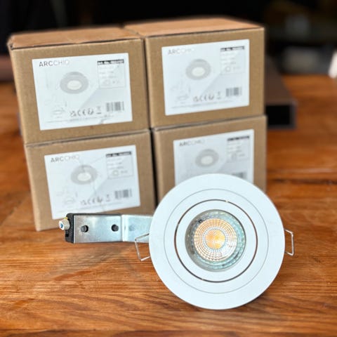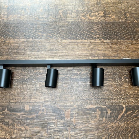 Spotskinne med tre lamper. GU10 fatninger. Bredde 60 mm, længde 600 mm, dybde 136 mm. Aldrig brugt, da jeg ikke fik brug for den alligevel i forbindelse med en badeværelsesrenovering. Har aldrig været taget ud af emballagen.