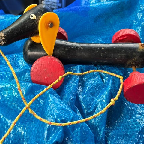 Gl. trækhund, Fisher Price/Brio?, Skøn, og meget gl trækhund med et fantastisk udtryk.