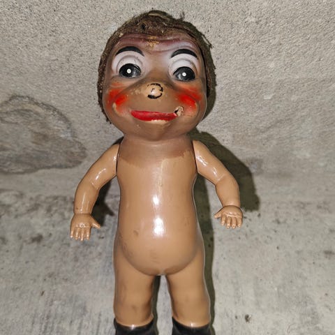 Dukker, Antik pindsvin de dukke, Høkrop m composit hoved.. Fuld af skælmsk charme. Måler ca 21 cm i højde Hvad jeg ved af ikke særlig almindelig.