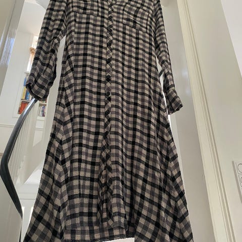 Skjortekjole, Leveté Room, str. XS, Oliven, Viskose, Ubrugt, Super kvalitet. Har aldrig været vasket eller brugt. Længde: 124 cm. På tværs under arme:49. Der er ikke stræk i stoffet.