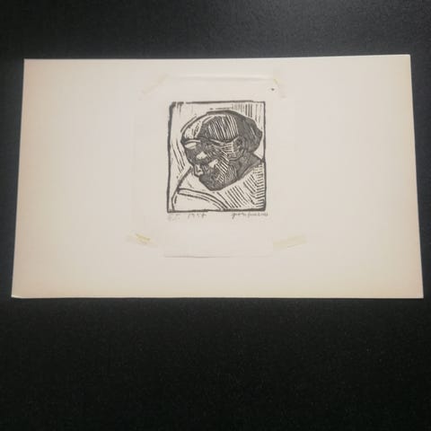 Litografi, Jens Peter Groht-Jensen (1918-2018), motiv: Børn på markedsplads
