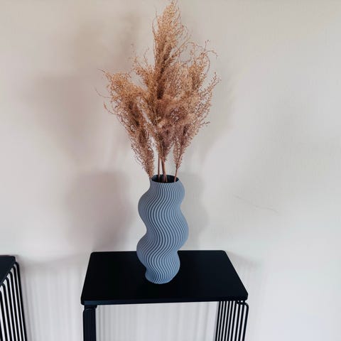 Vase i grøn keramik, Swrirl, nærmest jægergrøn og den fremstår som ny. Diameter 24cm, åbning for oven 15 cm i diameter og højde 20cm. Sendes gerne, send info.