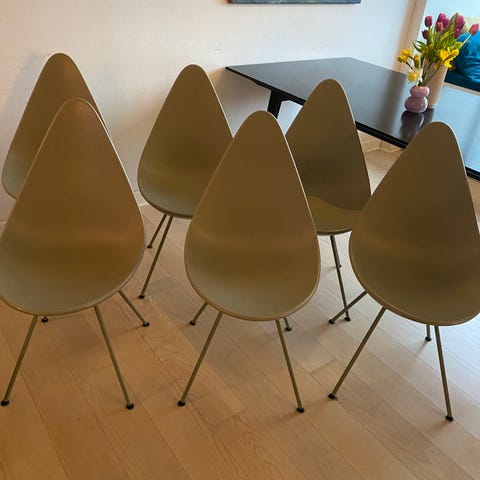 Spisebordsstol, Plast, Arne Jacobsen Fritz Hansen, 4 Arne Jacobsen Dråben / AJ 3110 stole i udgået smuk blå farve. Farven ses bedst på billede 3.