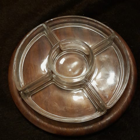 Smuk og unik retro snack skål i en kombi af glas/teak. Hyggelig til snold, nødder, oliven eller lignende.
