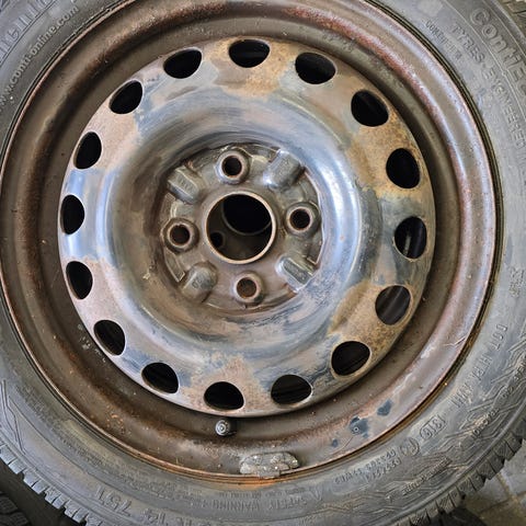 4 stk stålfælge med helårsdæk og nye kapsler. Passer til en Peugeot partner og garanteret en masse andre...