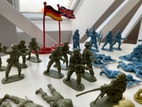 Engelske, amerikanske, japanske soldater i forskellige plastmodeller. Ret fine men enkelte har fået knækket geværløb af.