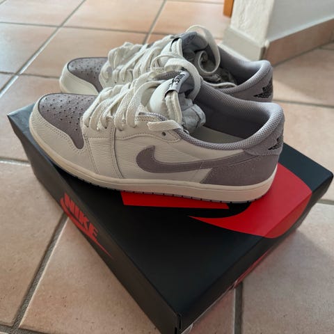 Meget velholdte Jordan homage størrelse 41. Brugt meget sparsomt, da de hurtigt blev for små. De er en meget flot stand. Og originalkasse medfølger selvfølgelig.