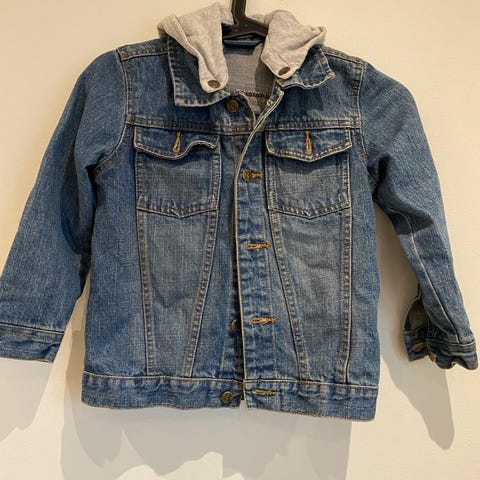 Super sej og praktisk grå cowboyjakke med aftagelig rød hætte. Str. 10 år. Af mærket Dombi - god kvalitet. Der gives mængderabat ved køb af mere tøj - bare spørg