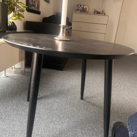 Jeg sælger mit lille runde sofabord da jeg skal flytte. Der er en lille ridse i overfladen men ellers står det flot og i fin stand.