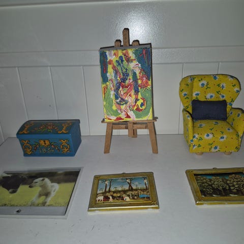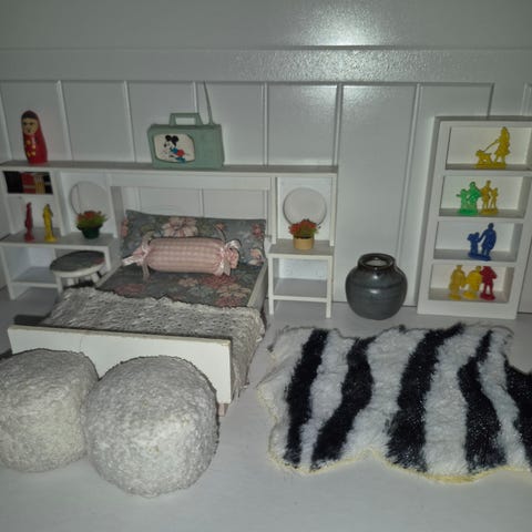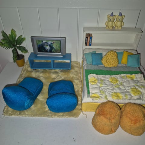 Lundby størrelse 1:18. Wellnes sæt. Liggestole, lampe, tv, bord, puf.