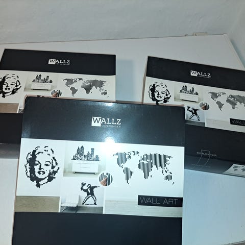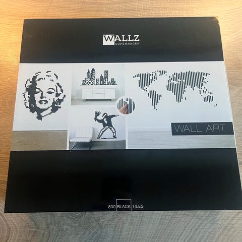 Wallz Copenhagen Wall Art, Wallz Copenhagen, Wallz Copenhagen Black Tiles sæt med 800 tiles/pixel til at lave kunst på væggen. Der er forskellige designs og hvordan man gør i et hæftet. Man kan også bare lave sit eget. Hver tile er 25x25mm. Sættet er uåbnet.
