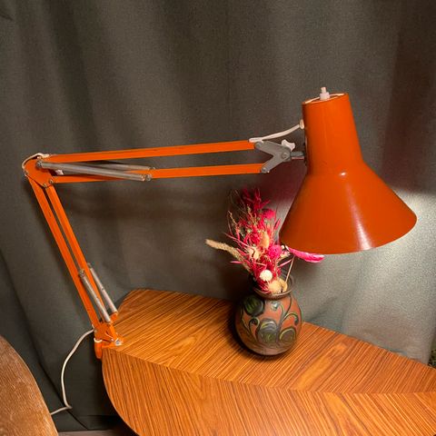 Lampen er fra 70'erne, i rigtigt god stand og inkl. holder. El og mekanik er fuldt funktionsdygtigt. Der kan medfølge vægbeslag.