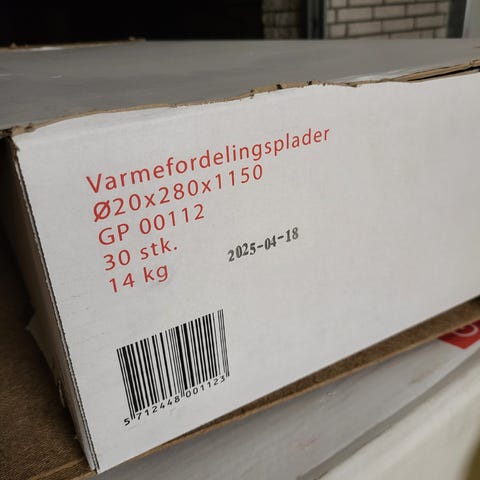 Helt nye varmefordelingsplader ca 36 stk i en kasse. 999 Per kasse. Nypris Per kasse 2235kr