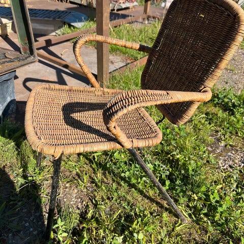 5 stk retro havestole, hvide med sort spaghetti flet.