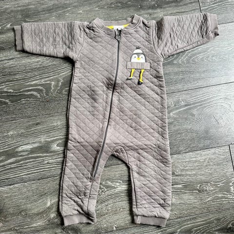 Heldragt, Ebbe , str. 56, Heldragt i mærket Ebbe. Brugt få gange til et efterårs barn. Er i rigtig fin stand. Hænder og fødder kan laves til luffer.