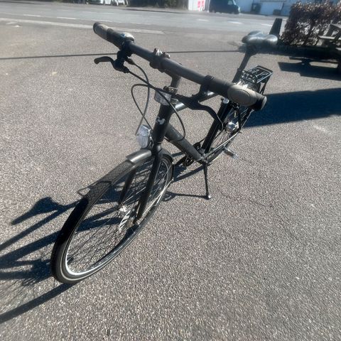 Den har fået ny dæk for, bremse kabler indre og ydre til for og bag, gear kabler indre og ydre, pedaler, låse plus beslag, håndtag, sadel, forlygte og baglygt og støtteben